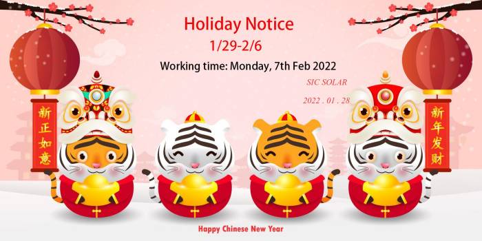 Der 31. Januar ist der chinesische Neujahrstag, und SIC Das SOLAR-Team hat vom 29. Januar bis zum 6. Februar Urlaub.