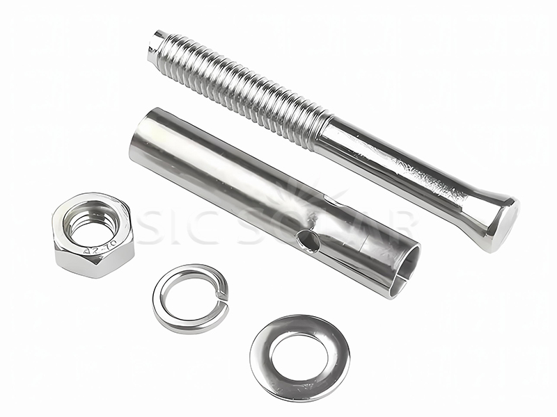 Spreizschrauben-Bolzenhülsen-Ankerbefestigung Mit Muttern und Unterlegscheiben. Beton- und Mauerwerksanker, einfach zu montieren. Die Spreizschraube ist robust und aus einem Stück gefertigt, mit hoher Tragfähigkeit und extrem starker Zugfestigkeit. Das Spreizrohr besteht aus nahtlosem Stahl und weist nach dem Spreizen eine hohe Zugkraft auf – für Stabilität und Sicherheit.