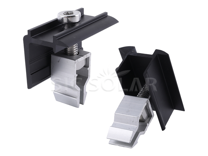 Schnellmontage-Mittel-/Endklemme für die Montage von Solarmodulen besteht aus drei Teilen: Klemme, Clip und Schraube. Die Schraubenlänge kann je nach Dicke des Solarmoduls angepasst werden, und Sie brauchen sich keine Sorgen zu machen, dass die Klemme nicht für das PV-Modul geeignet ist.