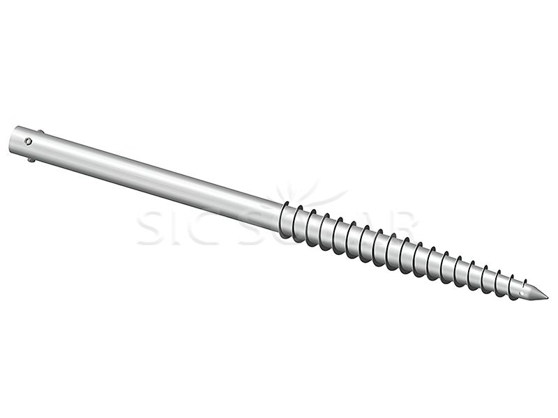Solar-Erdungsschrauben ohne Flansch Es zeichnet sich durch ein einfaches, stromlinienförmiges Design ohne Flansche aus und kann direkt in den Boden gerammt werden, was die Ausrichtung vereinfacht und eine flexiblere Einrichtung für bodenmontierte Strukturen ermöglicht.