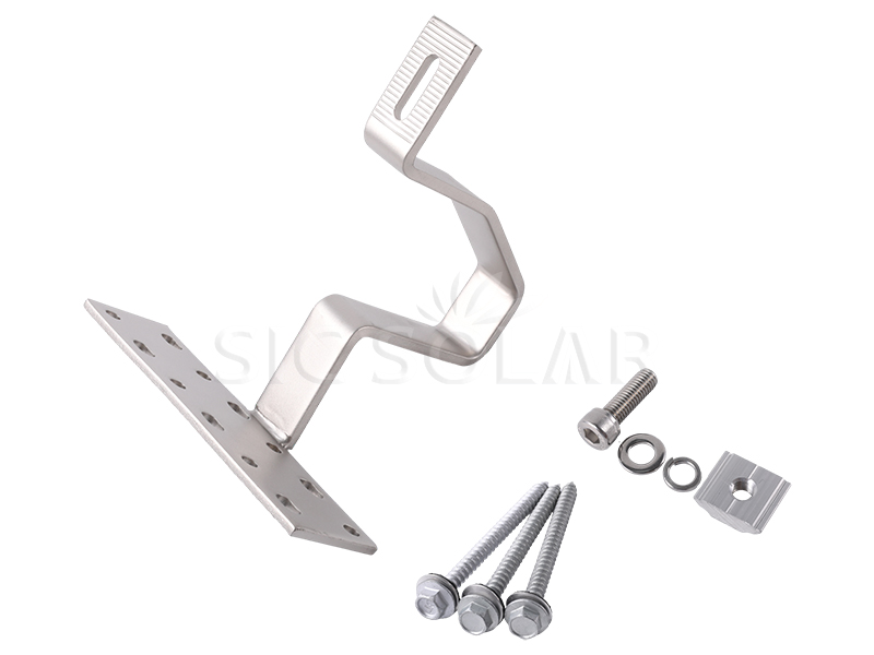 Standard-Dachhaken aus Edelstahl Sie sind so konstruiert, dass sie neben dem Gewicht der Solarmodule auch sehr schwere Lasten tragen und zusätzlichen Kräften durch Wind und Schnee standhalten. Die Montage ist einfach, da sie lediglich an Dachsparren oder Dachlatten befestigt werden müssen. Sie sind mit einer Vielzahl von Dachmaterialien kompatibel.