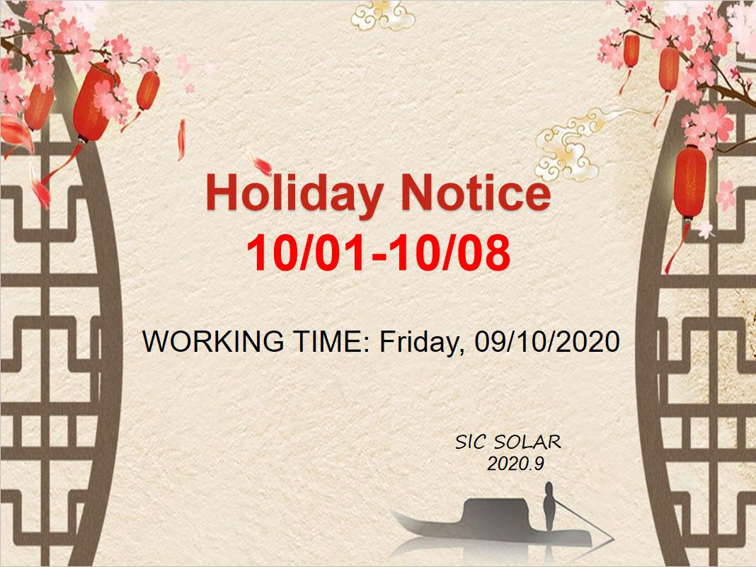 Der 1. Oktober ist der Nationalfeiertag, und die Angestellten von SIC wird bis zum 9. Oktober geschlossen sein.